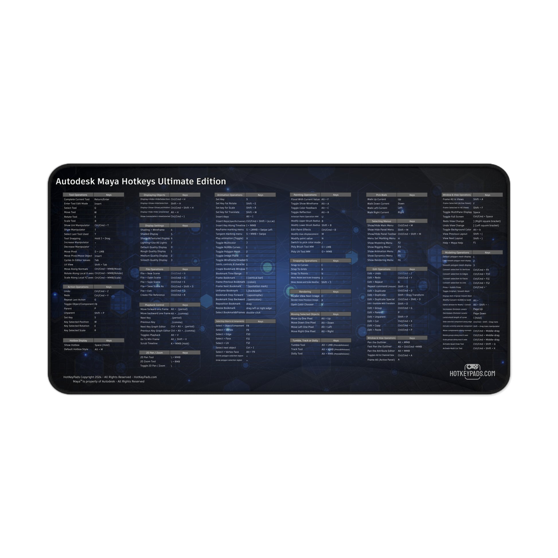 Autodesk Maya Hotkeys Ultimate Edition Gaming Desk Pad (16" x 32")